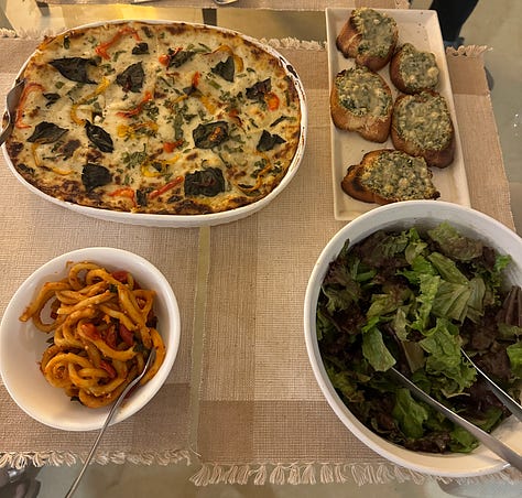 this month i didn’t do much cooking, but i did host a boardgame night. ever the hostess, the menu included lasagna, pesto-parmesan garlic bread, sun-dried tomato and mozzarella salad and chocolate crepes for desert.